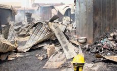 In Kumasi, scores of shops were razed to the ground at the central market when fire swept through it at dawn.