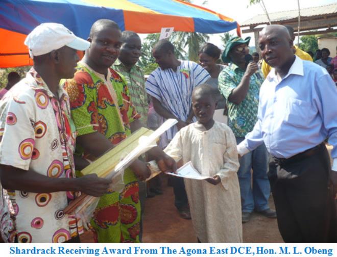 Though Shadrack Ogene Eku was not enlisted among the prize winners, the the District Chief Executive of Agona East, Hon. Martin Luther Obeng promised an amount of 500 Ghana Cedis to be given to the boy to help him expand his Livestock Farming.