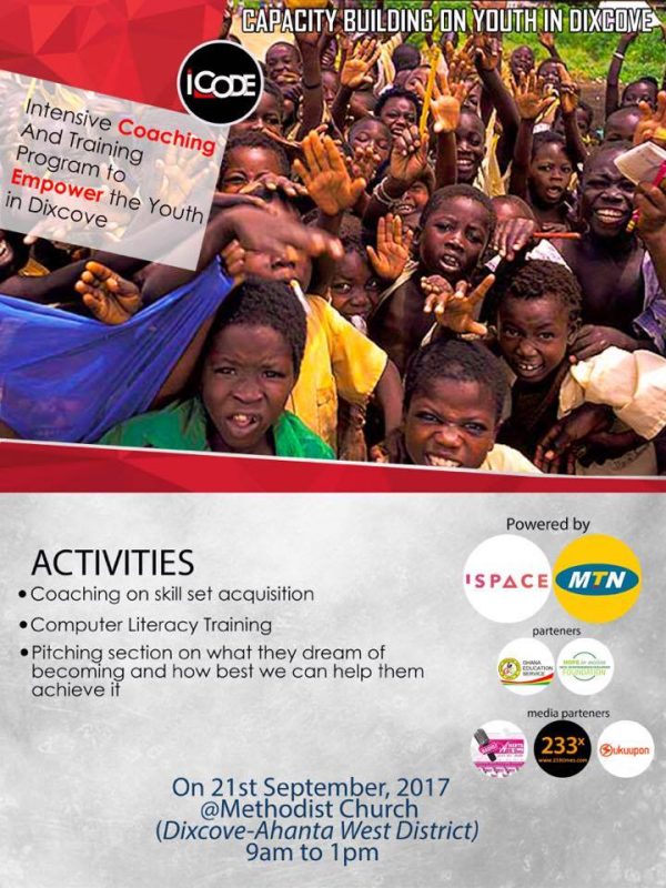 Coaching on skill set acquisition, computer literacy training, pitching section on dreams and how best to achieve them, amongst others are what the youth in Dixcove will benefit from at an intensive coaching and training programme on 21st September, 2017 at the Methodist Church in Dixcove.