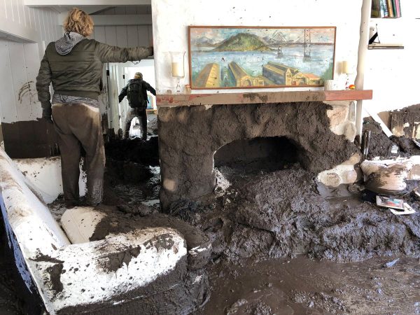 The first rain in months caused mudslides when it hit ground that had been burned by December’s huge wildfires.