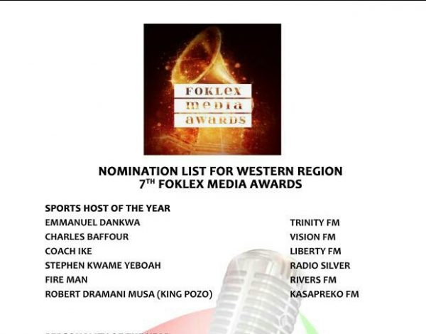 The 7th edition of the Foklex Media Awards nominated Kwame Yeboah who hosts Kickoff Morning on Radio Silver. Kwame Yeboah is the only Presenter from the Sekondi-Takoradi Metropolis who was nominated.