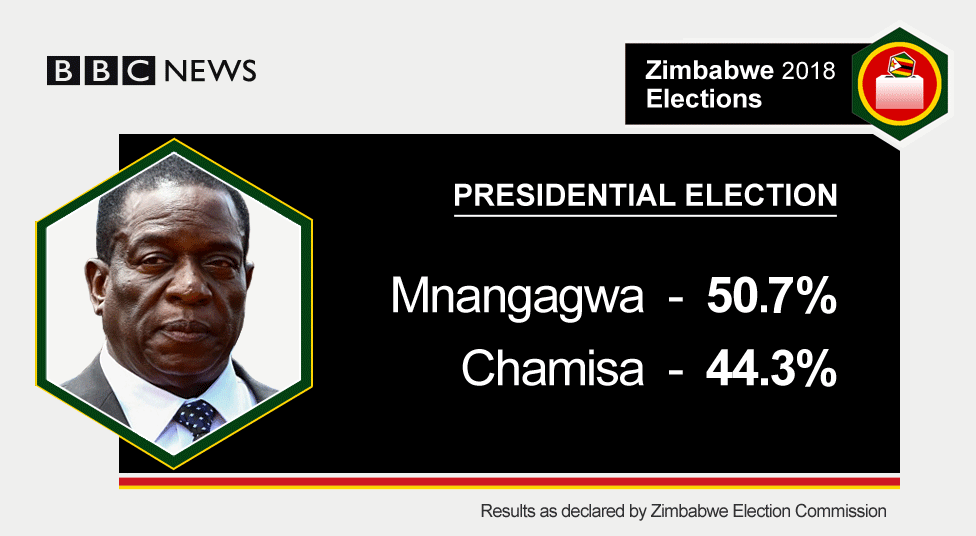 Mr Mnangagwa narrowly avoided a second-round run-off when he took 50.7% of the vote.