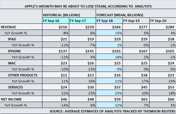 Graphic: Apple’s Growth Seen Slowing – reut.rs/2CS6xt8