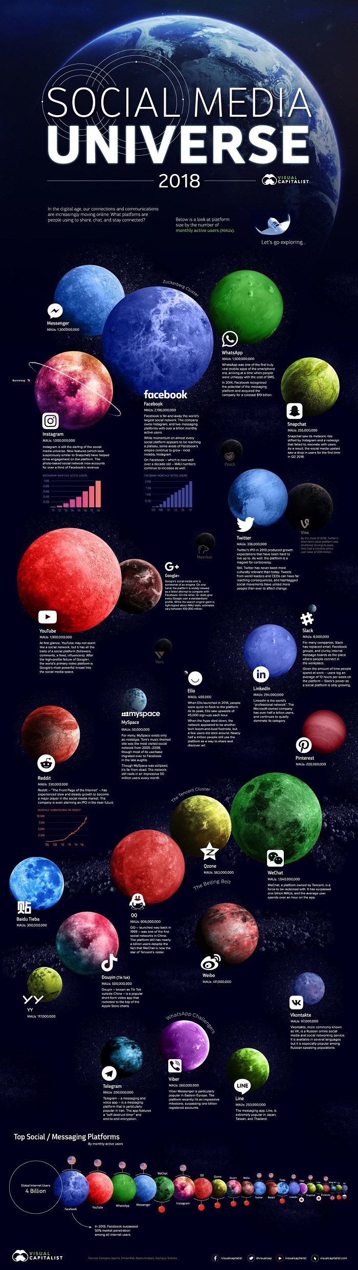 That’s what this new visual from Visual Capitalist id designed to do – they’ve created a new visualization of social media and messaging platforms as planets, and how they would look as a digital solar system.