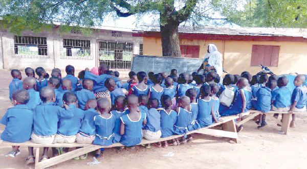 As a result, some of the pupils are compelled to sit in makeshift structures, under trees, on stones and benches for lessons.
