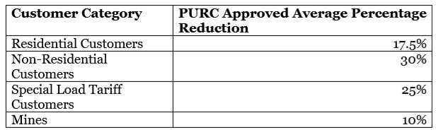 We recall that earlier this year, the PURC announced the reduction of electricity tariffs as shown in the table below: