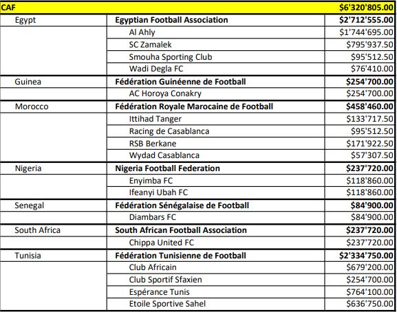 Clubs like Al Ahly of Egypt, Horoya of Guinea, Enyimba of Nigeria, Esperance of Tunisia, Chippa United of South Africa all got some compensation for the use of their clubs in the tournament.