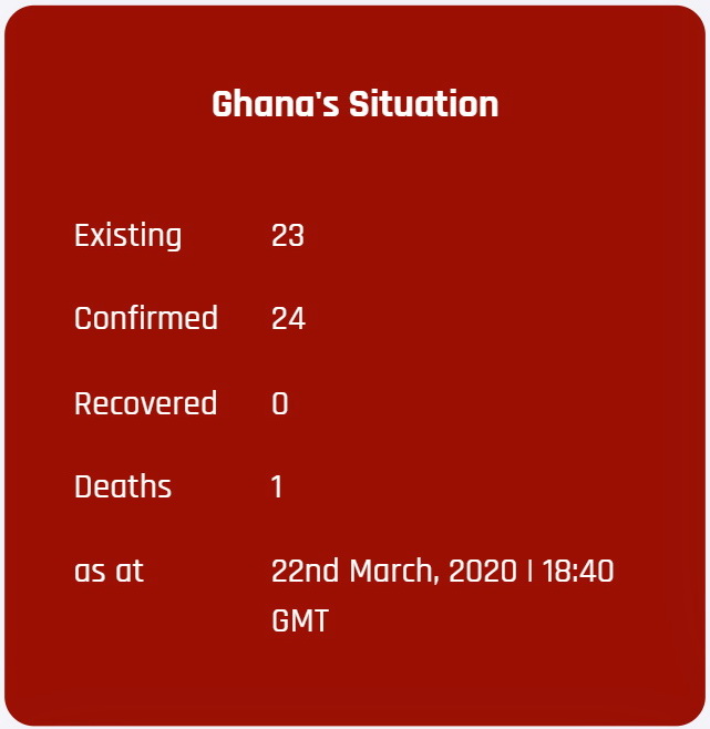 Regions that have reported cases are Greater Accra, Ashanti, Central, Eastern, Northern, North East, Upper East and Upper West.