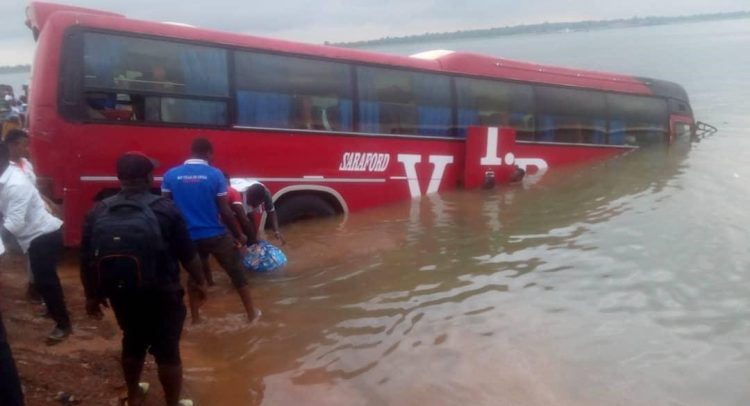 A VIP bus enroute to Wulensi in the Northern Region on Thursday morning plunged into River Oti at Dambai in the Krachi East Municipality.