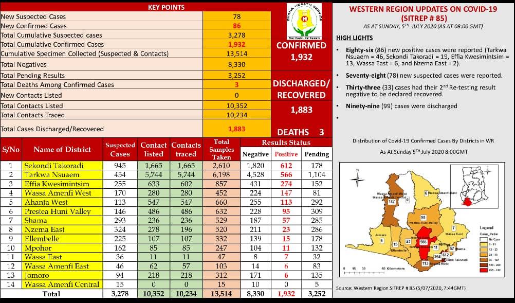 From the latest update, the region has recorded three (3) death. With a total of 1,932 confirmed cases in the region, 1,883 have recovered/discharged.