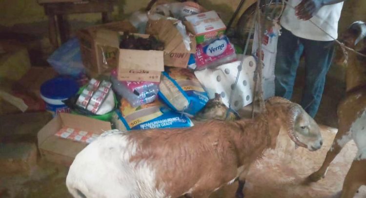 Some of the items are two goats , one sheep, smoked meat, two packs of oil , key soap one box, one Omo box , two cartoon of milk, two bags of rice, pampers, Tissue , Tin fish three boxes and bottled water packs.