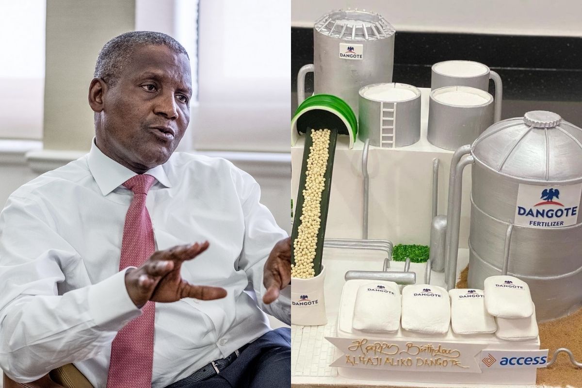 The cake took the form of Dangote’s factories, especially his newly commissioned fertiliser producing company.