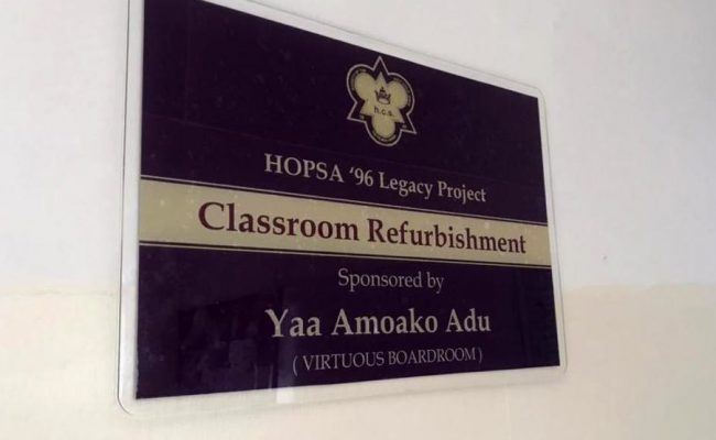 Miss Amoako-Adu who was mentioned in the 75th anniversary newsletter of Hopsans as ‘Friend of Hopsa’ was mentioned as a sponsor of GHc30,000 for the renovation of the classrooms which were in a deplorable state.