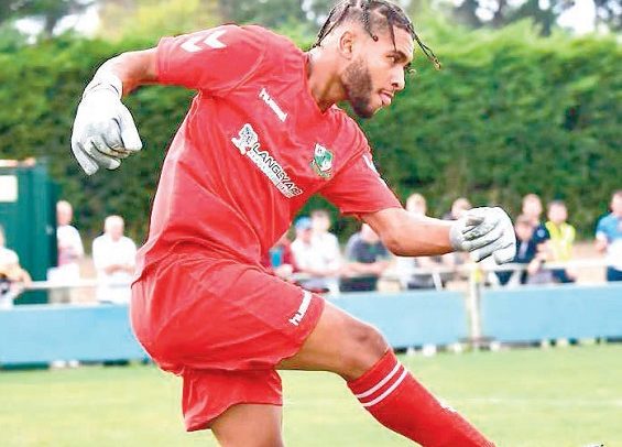Blackfield & Langley FC’s Connor Maseko was caught short in the 76th minute of his side’s 0-0 draw against Shepton Mallet FC when the ball went out for a goal-kick.