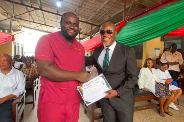 At a brief ceremony, Lawyer Philip Fiifi Buckman and his team honored the health staff at Kwesimintsim Hospital, recognizing their dedication and hard work, particularly during the recent cholera outbreak. The team presented awards to the staff and donated essential hospital equipment to support the facility’s daily operations