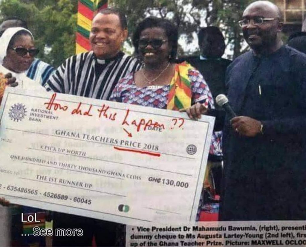 A picture of a wrongly spelt word on the dummy cheque presented to the best teacher on Teachers’ Day is causing a stir on social media with many mocking teachers in the country. The check which showed the reward package … Read more →