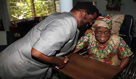 President Mahama visited aggrieved Theodosia Okoh after her name vanished from the National Hockey stadium as part of an apparently arbitrary renaming spree by Accra Mayor Alfred Oko Vanderpuijie.