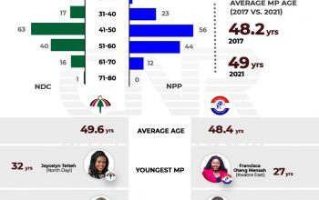 Ghana’s 8th Parliament, compared to the previous one will have fairly older legislators on average. From an average age of 48.2 in the 2017 House, the parliamentarians of the new Parliament have an average of 49 years. The National Democratic … Read more →