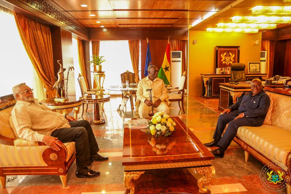 President Akufo-Addo on Tuesday, met with three of Ghana’s former Presidents: Jerry John Rawlings, John Agyekum Kufuor and John Dramani Mahama. The four at the meeting which was held at the Flagstaff House discussed issues of national development. Below is … Read more →